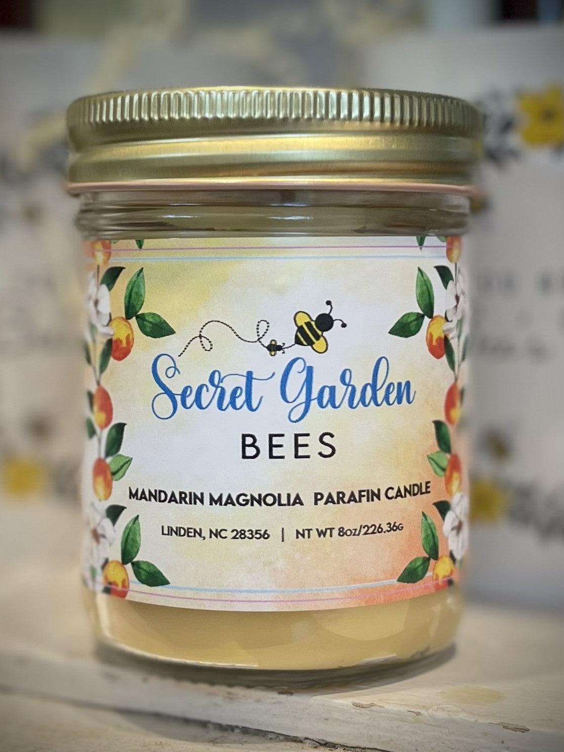 A hand crafted candle made from parafin that will delight your senses with the sweet and fruity smell of mandarin oranges and magnolia blossoms!